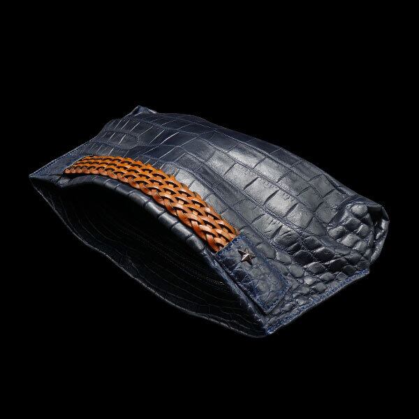 柔らかい牛革を贅沢に編み込んだハンドルが特徴の、