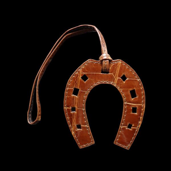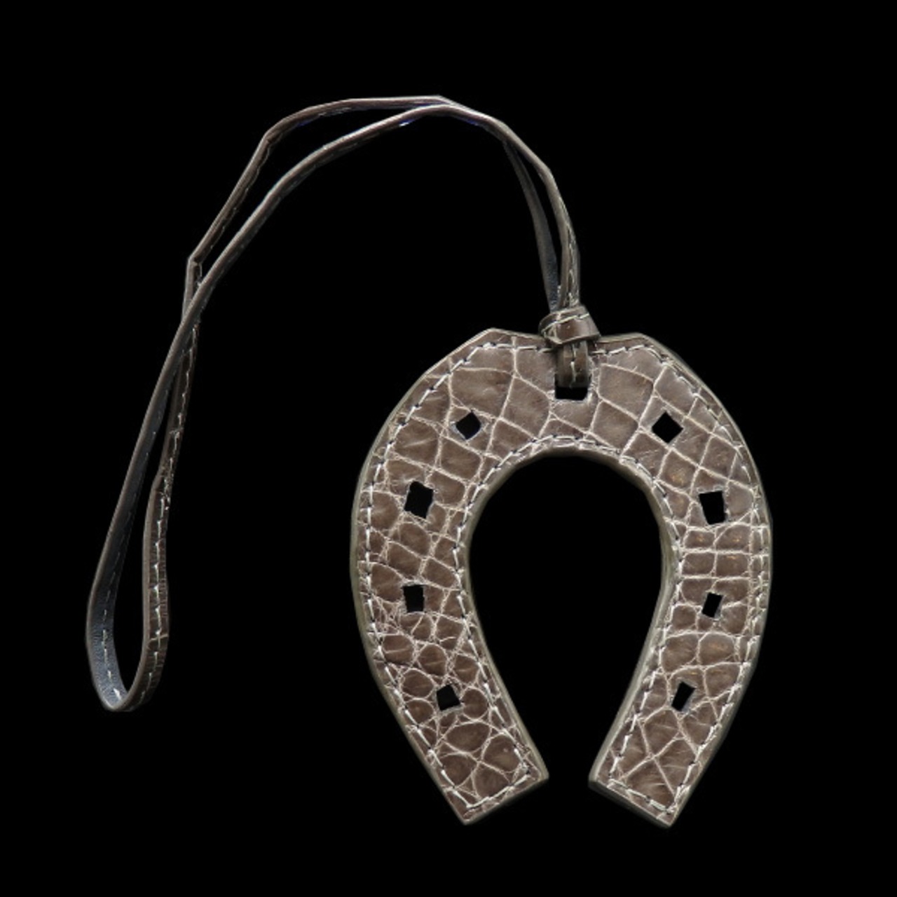 クロコダイルレザーを贅沢に使用した、蹄鉄モチーフのキーホルダー。