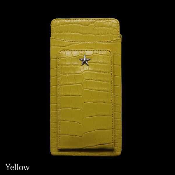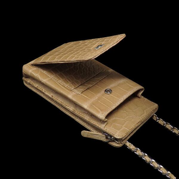 シンプルなデザインのクロコダイルレザーポーチ。