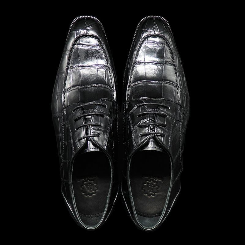 本物のクロコダイルレザーを贅沢に使用したシューズ。